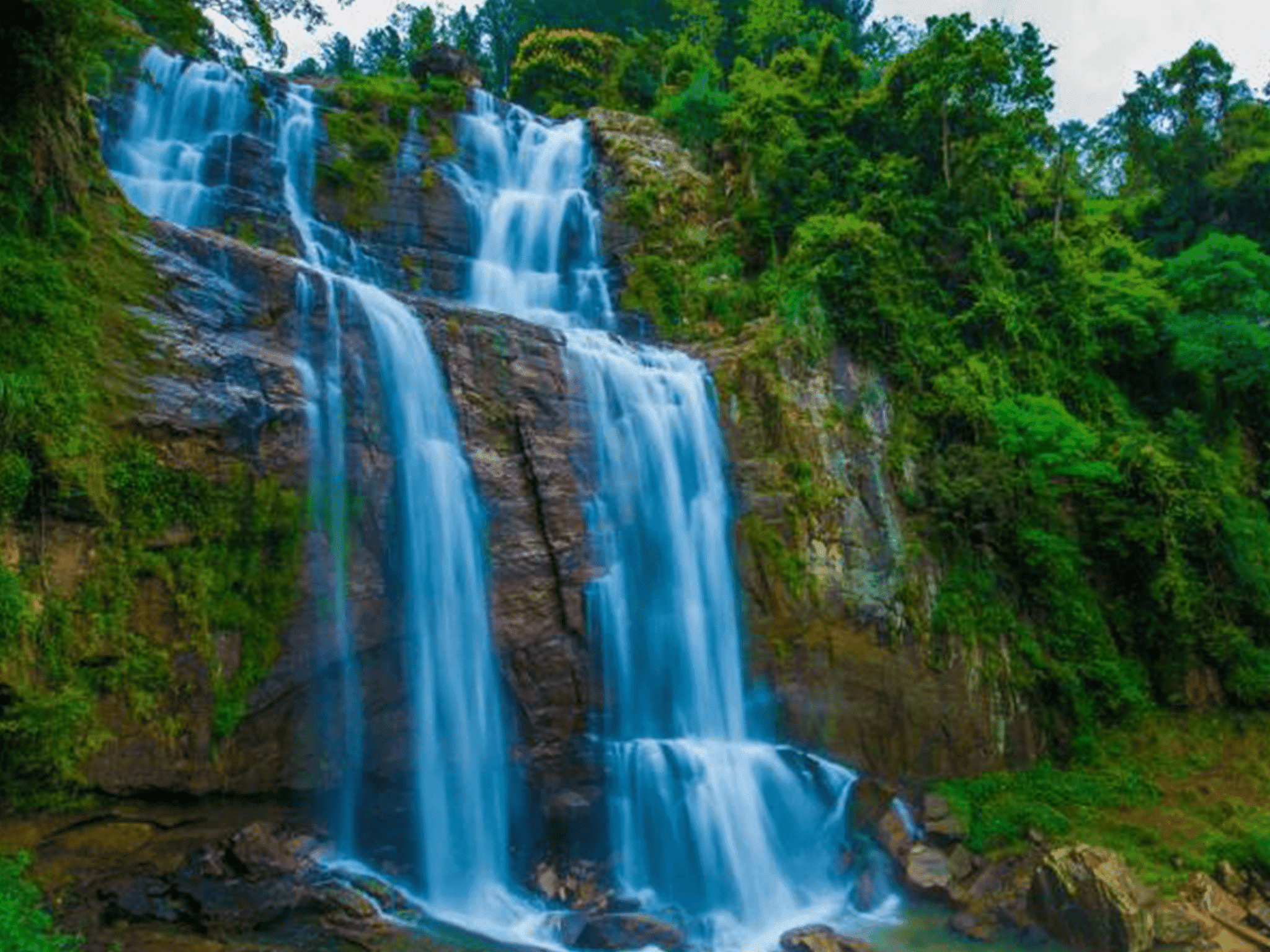 the Central Province of Sri Lanka. The waterfall is nestled in the lush green hills of the central